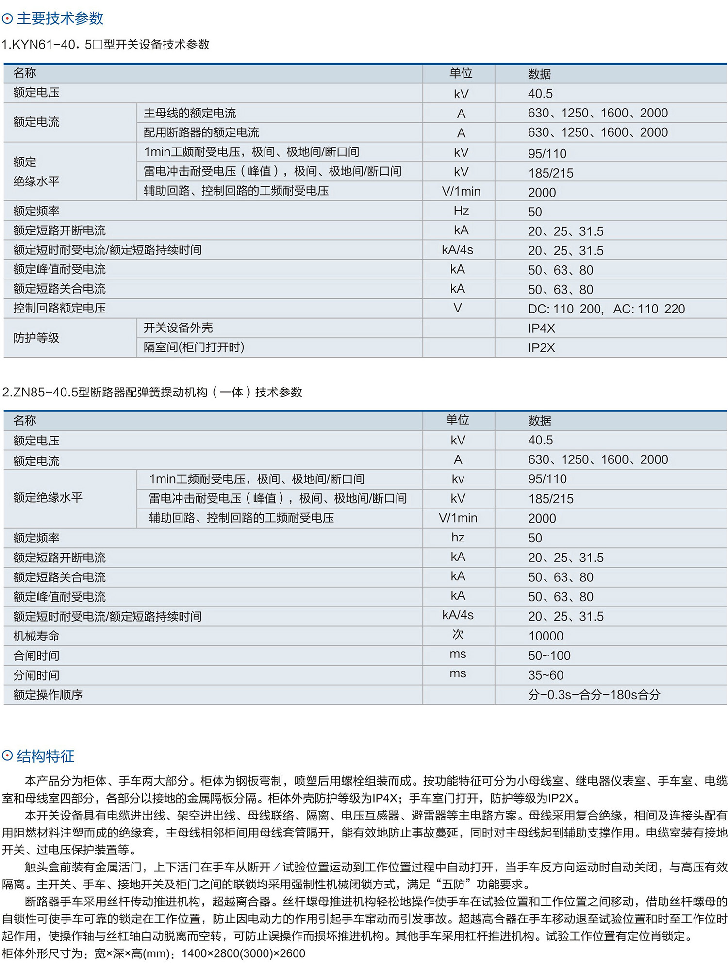 KYN61-40.5□型鎧裝移開式交流金屬封閉開關(guān)設(shè)備